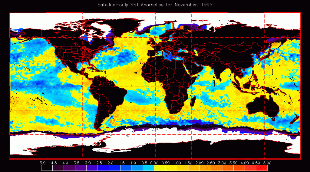 In fact, many of the recent La Niña years looked quite different. Here’s fall of 2017 (note slightly different color scale):