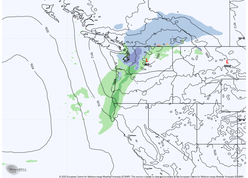 Second, a weak surface low might form and track across south-central Washington. Low pressure to the south of Puget Sound will help to draw colder air down from the north. This scenario was best depicted in the 12 UTC ECMWF deterministic run on Saturday.