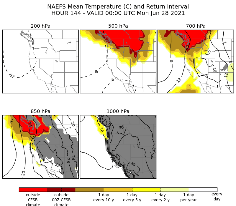 So the large-scale pattern and upper-air temperatures support the potential for monthly as well as all-time record highs Saturday-Sunday-Monday timeframe in some locations. Preparations to protect populations vulnerable to extreme heat should already be underway.