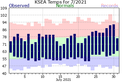 Seattle (Sea-Tac) ended July 0.8°F above normal thanks to a few warm days at the end of the month.