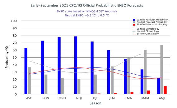 Looking farther ahead to the winter, NOAA is continuing to predict La Niña conditions, meaning the general cool/wet pattern will likely dominate, especially as we move into 2022.