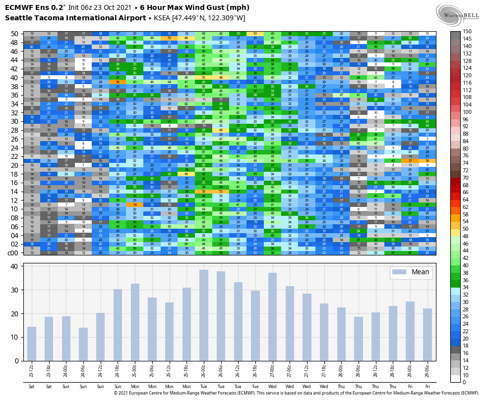 Most ECMWF ensemble members show peak wind gusts in the 35-45 mph range at Sea-Tac airport. Enough to cause some tree damage and isolated power outages.