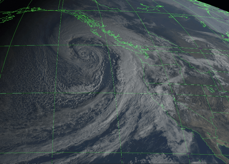 Friday morning’s satellite image was a sight to behold, as a large mid-latitude cyclone extended its reach across thousands of square miles of the NE Pacific.