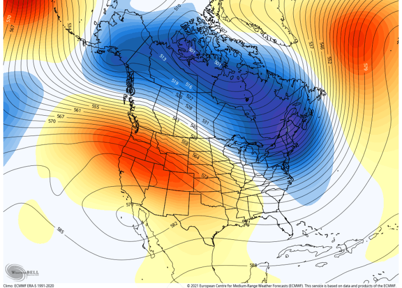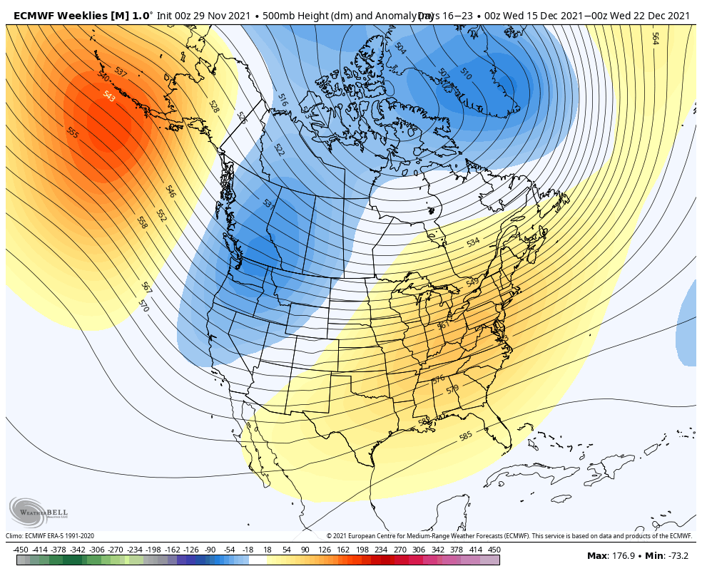 The GEFS paints a similar version of events for the second week of December, but with less of a trough over the western US.
