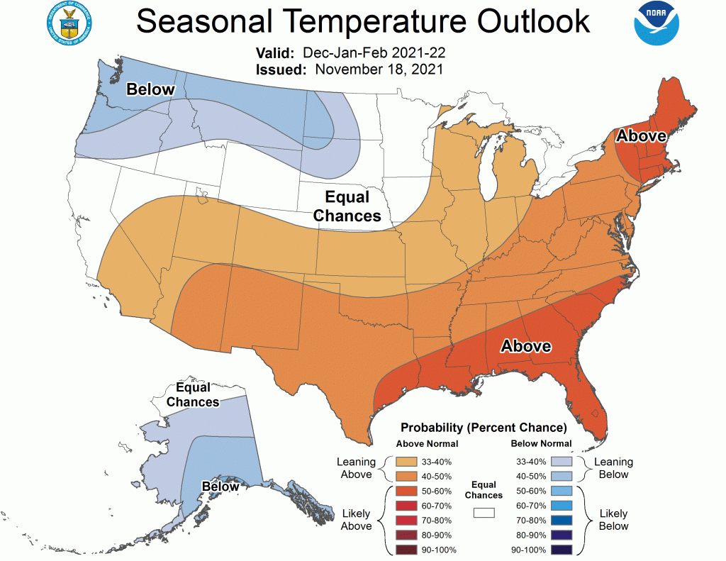 The effects of La Niña are most typically felt later in the winter (January-February), so the general expectation, reflected in NOAA’s seasonal forecast, is that winter will be cooler than normal as a whole.