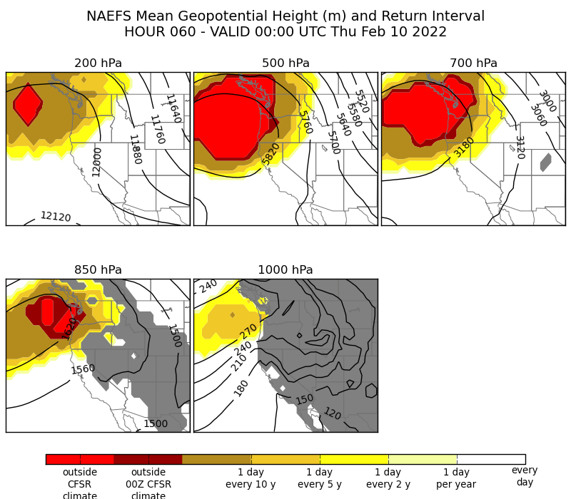 The strength of the ridge is expected to be outside of the 30-year NAEFS climatology for this time of year.
