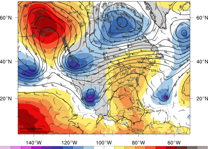 The forecast upper-air pattern on Tuesday night shows a typical “Alaska block” setup for cold air intrusions into the PNW. This pattern places the PNW in a cold, northerly flow regime downstream of the ridge.