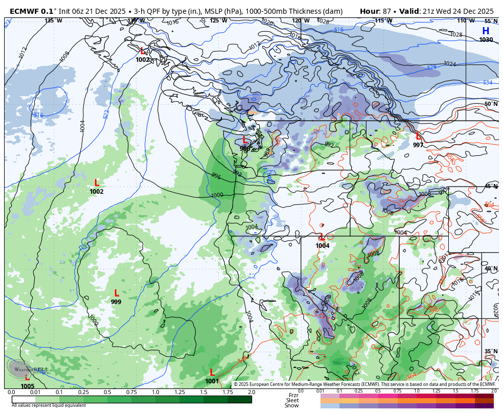 On Friday I mentioned the potential for lowland snow in Washington around Christmas as some models had shown the aforementioned low pressure system taking a favorable track for snow.