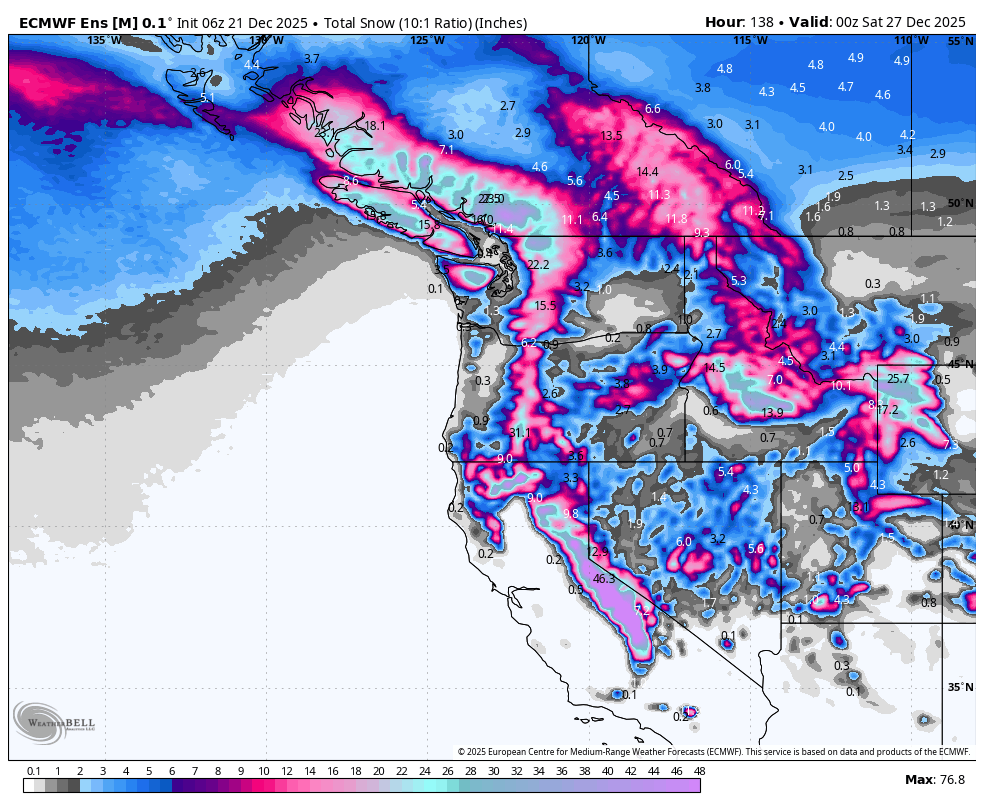 One notable exception to the above torching is the west coast of North America. The longwave trough off the west coast of the US will continue to send weather systems onshore for the foreseeable future.