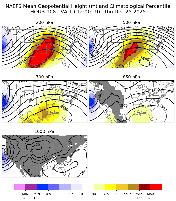 In terms of anomalies, the center of the ridge at upper levels (200 hPa, 500 hPa) will be the highest on record at this time of year over the central US.